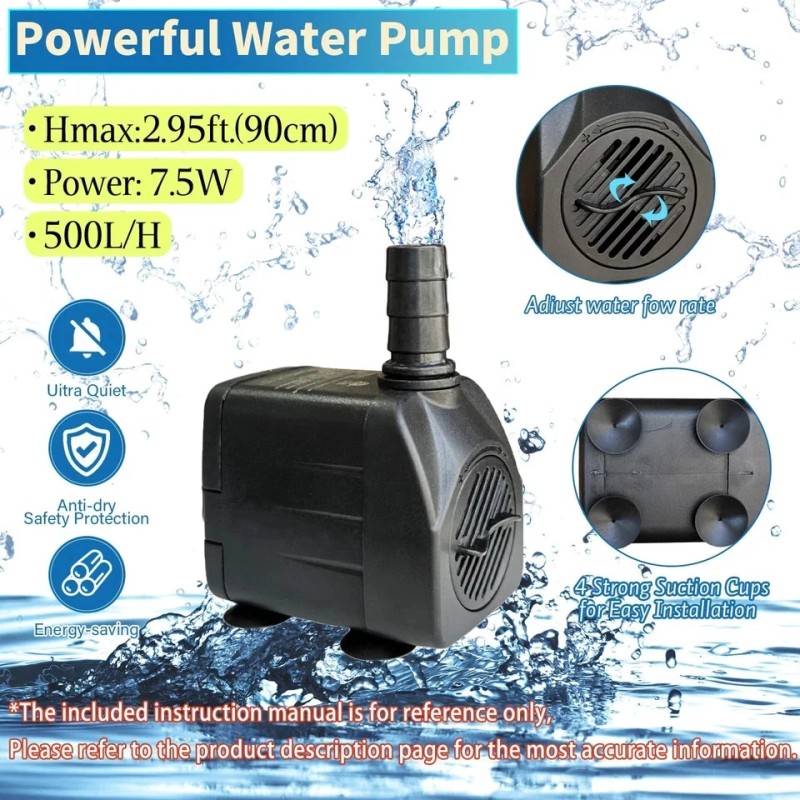 Versatile Applications: Birdbath fountain perfect for bird baths, bird feeders, fish tanks, small ponds, pools, and garden decorations, adding charm and vitality to any outdoor space.When starting, always submerge the pump first and then plug in the unit. At the beginning, it probably can’t pump water , because there is air inside the pump and tube. Please pull out and insert the plug a few times. It will work very well at once.