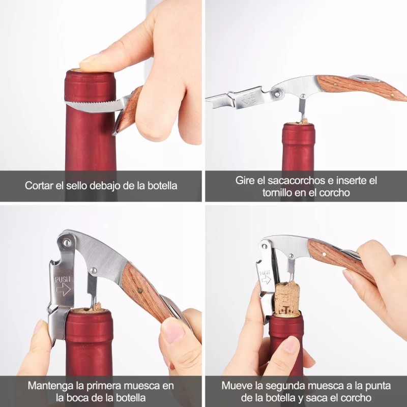 Equipado con un cuchillo de sierra, Destapa Corcho y un Destapador de gran resistencia para un uso seguro y duradero! ortador de papel para quitar la lámina fácilmente. Es plegable, portátil y fácil de limpiar, llevar y guardar, perfecto para uso doméstico y comercial.