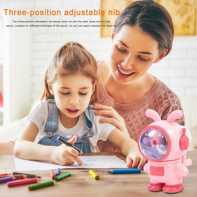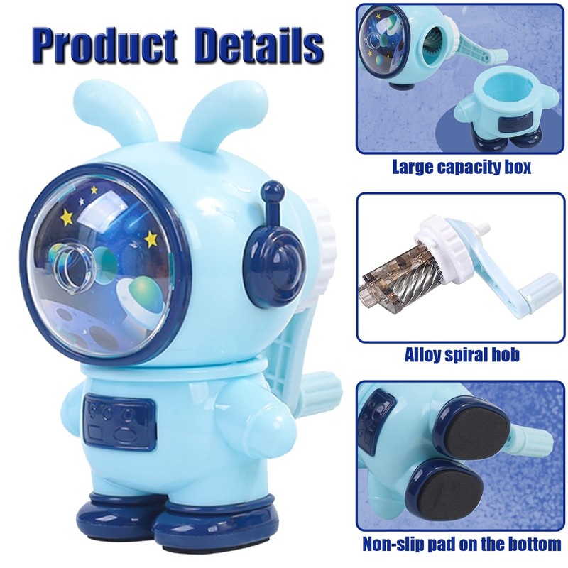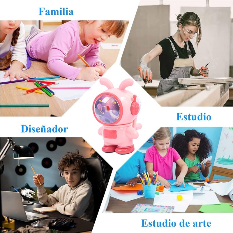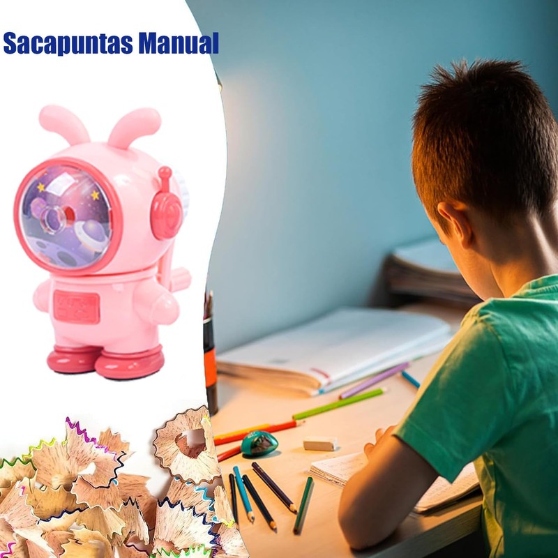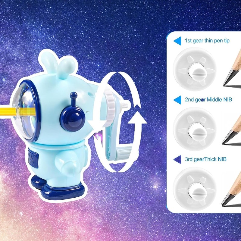 - Diseño de almohadilla para los pies: nuestro sacapuntas manual tiene un diseño de almohadilla para los pies para evitar que se deslice durante el uso. También cuenta con un lindo patrón conejito espacial que ilumina tu escritorio.También un regalo perfecto.