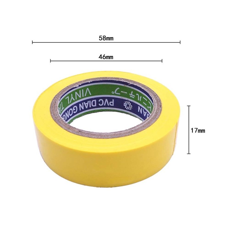 - Package includes: 6 pack of insulating tape coloured set in one stack, black, white, red, blue, green, yellow. Length: 9 m / 29.5 feet / 354 inches, width: 17 mm / 0.056 feet / 0.67 inches.