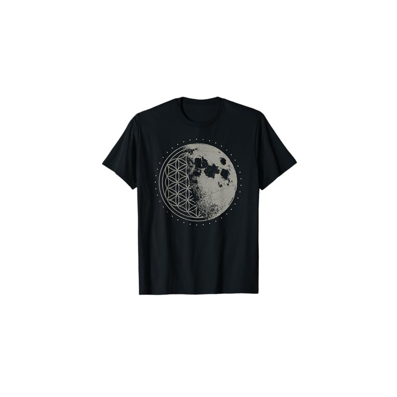 Sacred Geometry Moon Flower of Life Psychedelic Goa LSD DMT T-Shirt