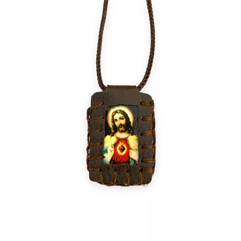 Sacred Heart of Jesus Brown Scapular Necklace Collar Escapulario Sagrado Corazon