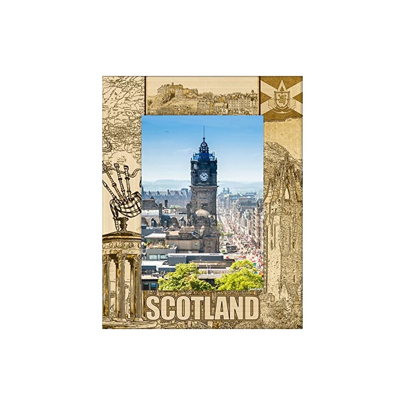 Saddle Mountain Souvenir Scotland Quad Style Laser Engraved Wood Picture Frame Portrait (8 x 10)