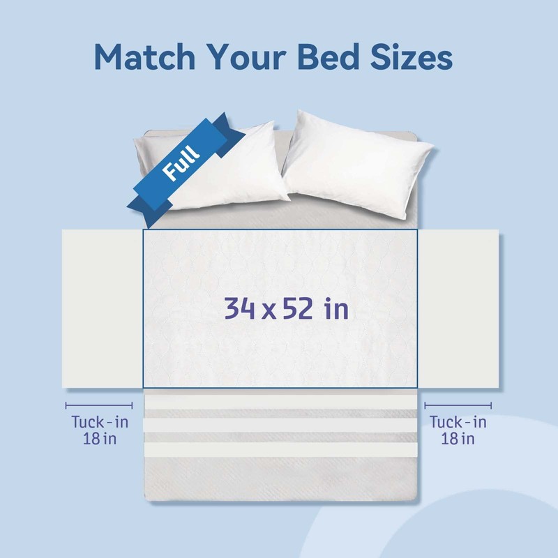 Saddle Style Ultra Soft Quilted Incontinence Bed Pads 34"X52" -2 Pack (with 18‘’ Flaps), Washable and Reusable