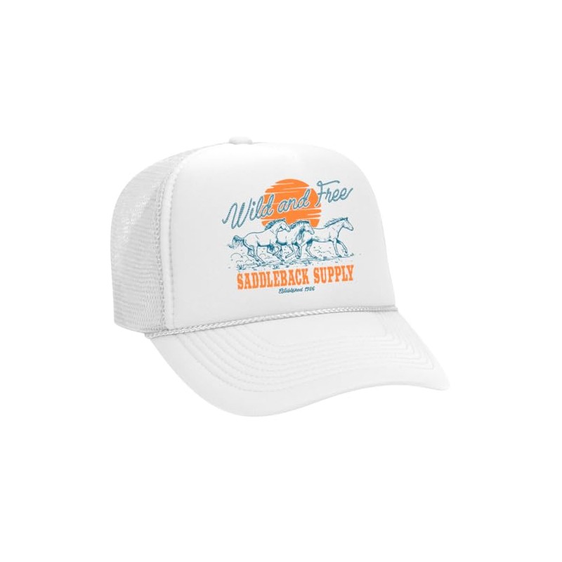 Saddleback Supply Foam Snapback Trucker Hat Wild and Free Logo-White/c