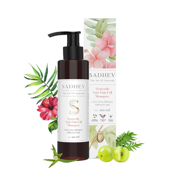 Sadhev Ayurvedic Anti-Hairfall Shampoo With Curry Leaves, Bhringraj, Hibiscus And Amla - 200 ml (pack of 1)