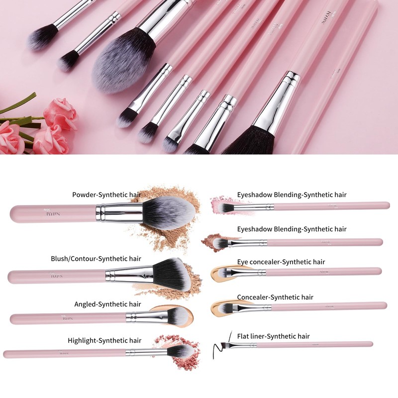 - Complete 9-Piece Set: All essential brushes for face and eye for a full makeup routine, eyeshadow, blending, eyebrow, eyeliner, lipliner, concealer, foundation, powder, blush brush and so much more.