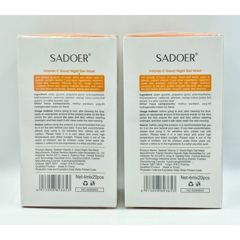 Sadoer 2 x SADOER Deep Cleansing Mask Moisturizing Restorative Daub-Vitamin C-20pcs