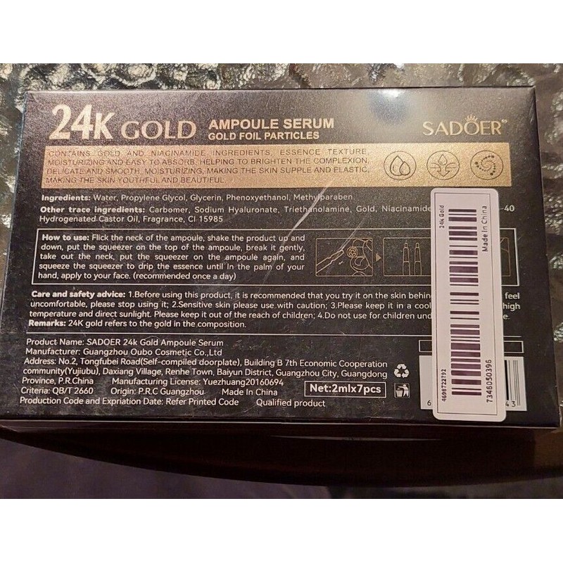 SADOER 24K GOLD Ampoule SERUM 2ml. x 7 is rich in essential ingredients that reduce wrinkles, prevent wrinkles, lift and moisturize the skin, make it firm and hydrated and slow down aging.