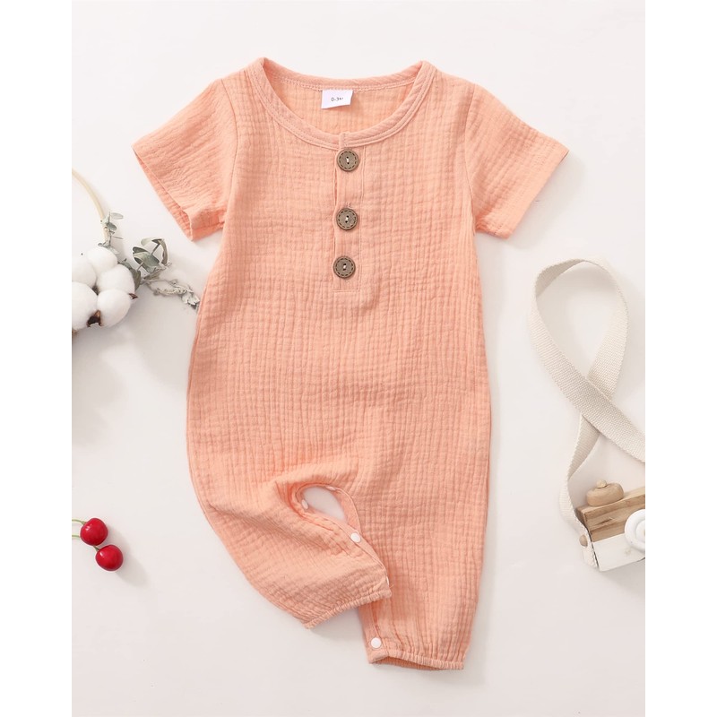 Saeaby Baby Girl Clothes Summer Outfit Infant Pink Jumpsuit Short Sleeve Romper Bodysuit Newborn Clothes One Pieces Outfit for Baby Girl 0-3 Months