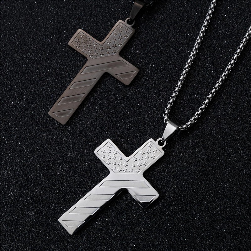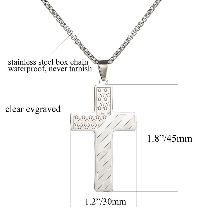 SAELACY American Flag Cross Necklace for Men with Bible Verse Joshua 1:9 Black Silver Tone Stainless Steel Christian Pendant Necklace Box Chain (Joshua 1:9, white, chain length:18")