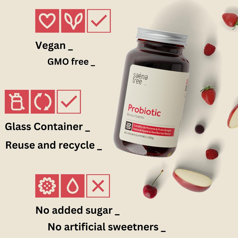 SAENATREE - Probiotic Vegan Gummies - 3Bn CFU Bacillus Subtilis per Daily Dose - No Added Sugar - Pack of 60