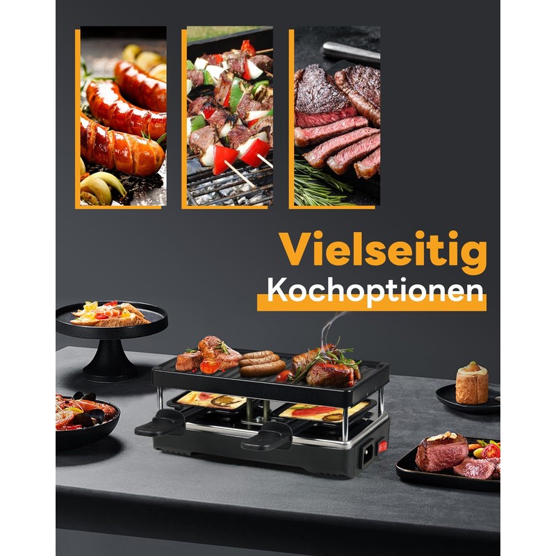 - Compact and Space-Saving: Designed to fit seamlessly even in smaller kitchens, this 2-person raclette grill is space-efficient, making it an excellent choice for those seeking a delightful dining experience without compromising kitchen space.