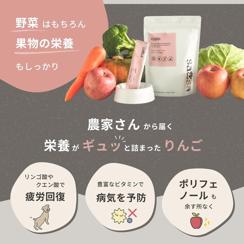 Saesa Dog Sprinkle, Totally Additive-Free, Domestic Vegetables, Hypoallergenic, Individual Packaging, 0.2 oz (5 g) x 10 Pieces, Compatible with Cats and Small Animals (0.2 oz (5 g) x 10 Bottles, Apple