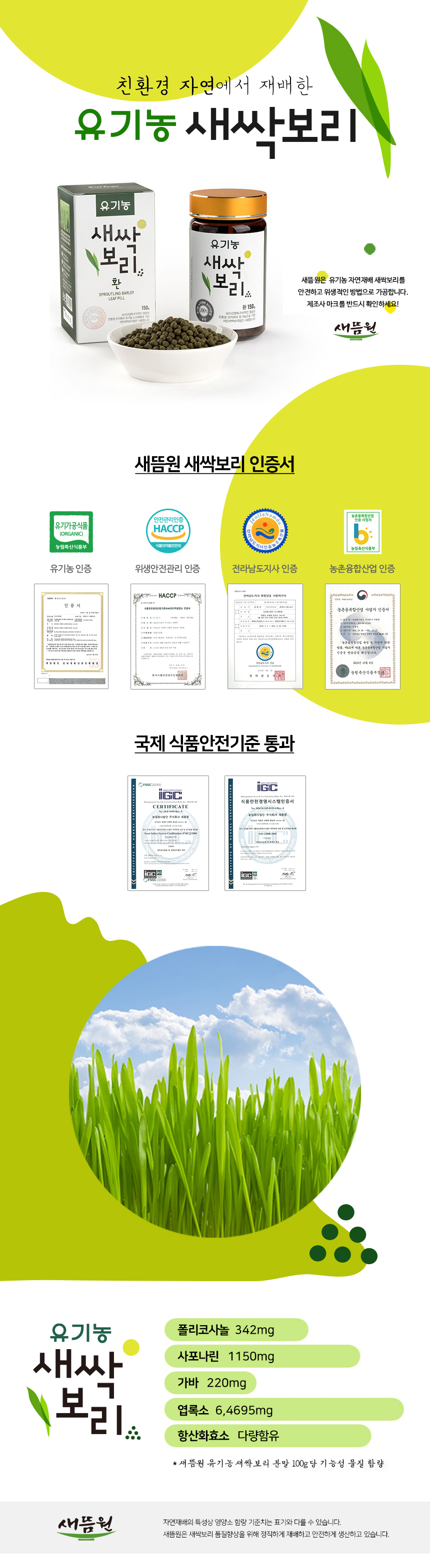 Saeteumwon Sprout Barley Pills 150g (2 packs) / 새뜸원 새싹보리환 150g 2개입