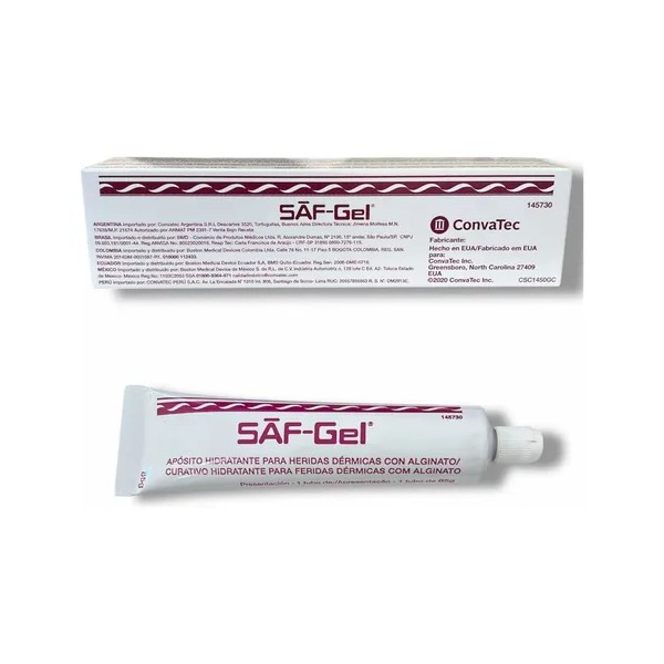 .Saf-gel es un gel cuyo mecanismo de acción ayuda a la reparación, regeneración y cicatrización de la piel por heridas tales como: Quemaduras en casa y de sol Agrietamientos, cortaduras y ulceraciones por pie diabético, lesiones en la piel Ingredientes activos: Alginato de Calcio Da rigidez, resistencia y flexibilidad del tejido favoreciendo la reparación de la p i e l