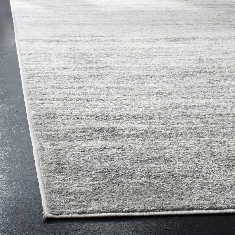 Make a decorative statement with this effortlessly modern rug from Safavieh’s Adirondack collection. A subtle washed effect gives the rug character and an impeccably relaxed yet intricate appearance. Striated lines of ivory and silver shades create a gradient effect that will seamlessly work alongside a multitude of colors and prints for a true contemporary feel. This rug has been power-loomed with high-quality polypropylene fiber, which ensures that it will be long-lasting and virtually non-shedding. Place this rug in the bedroom, foyer, living room, bedroom, or kitchen to add warmth and stylish appeal to the area. The rug has a low pile height to fit effortlessly beneath furniture, is soft to the touch, and can withstand high traffic areas of your home.