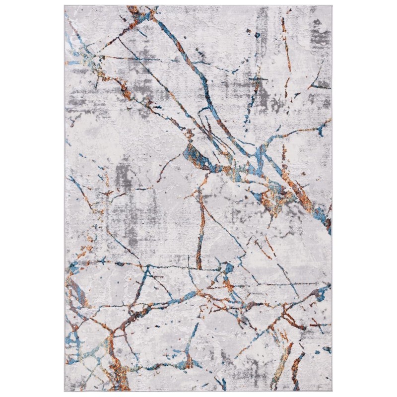 SAFAVIEH Amelia Collection Area Rug - 5' Square, Grey & Blue Gold, Modern Abstract Design, Non-Shedding & Easy Care, Ideal for High Traffic Areas in Living Room, Bedroom (ALA293M)
