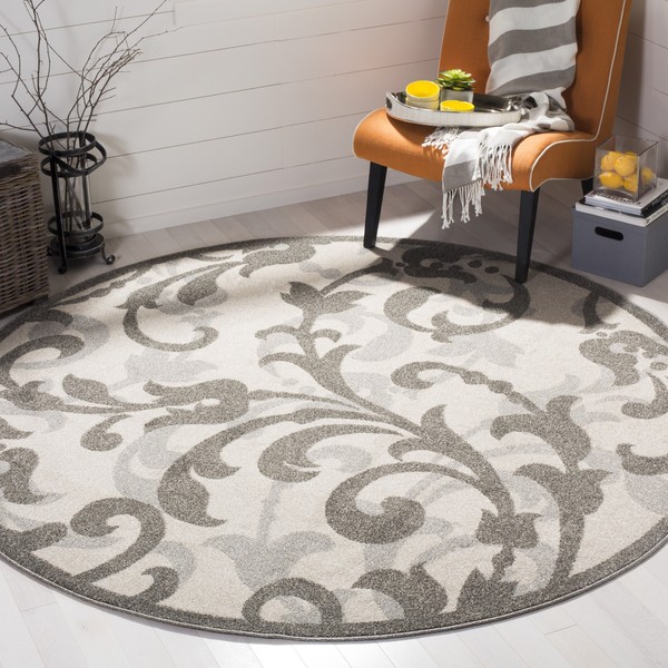 Safavieh Amherst Collection AMT428K Ivory and Grey Indoor/ Outdoor Round Area Rug (7' Diameter)