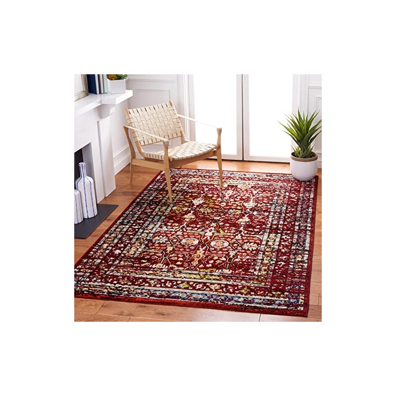 SAFAVIEH Amsterdam Collection Area Rug - 8' x 10', Red, Oriental Distressed Design, Non-Shedding & Easy Care, Ideal for High Traffic Areas in Living Room, Bedroom (AMS177Q)