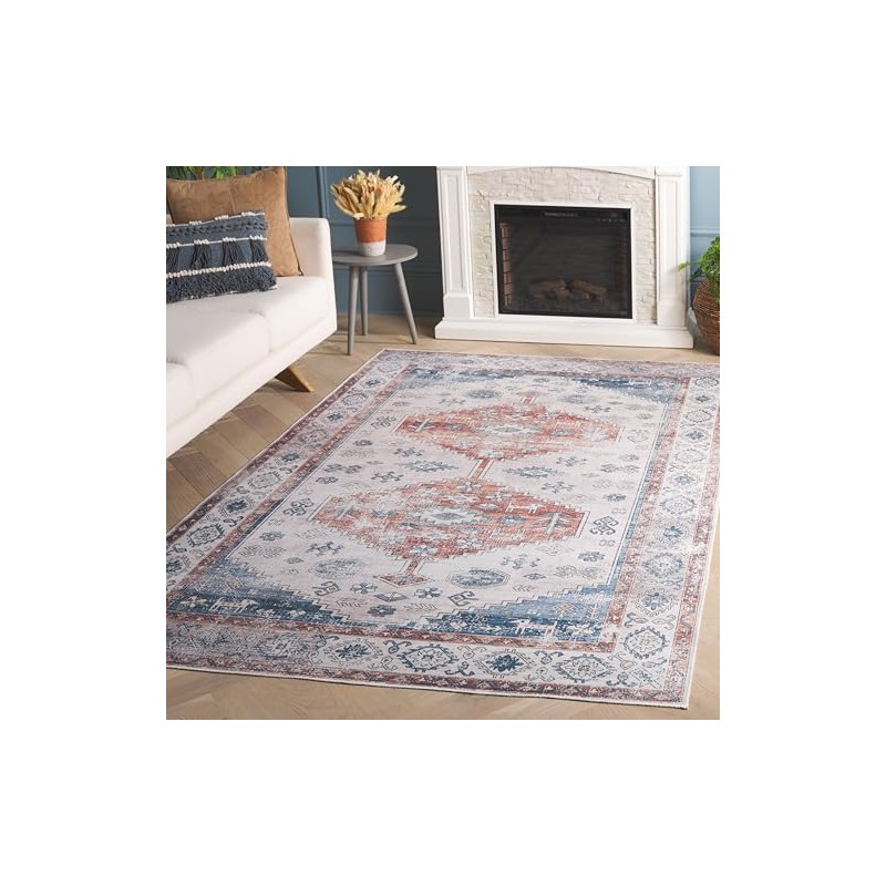 SAFAVIEH Arizona Collection Area Rug - 6' x 9', Rust & Beige, Persian Design, Machine Washable & Slip Resistant, Ideal for High Traffic Areas in Living Room, Bedroom, Dining (ARZ132P-6)