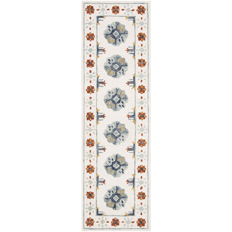 Safavieh Blossom Collection BLM901A Handmade Premium Wool Runner, 2'3" x 8' , Blue / Ivory