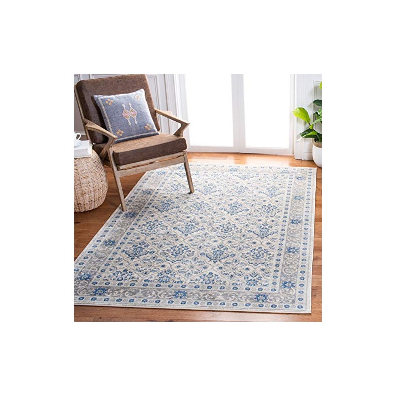 Safavieh Brentwood Collection BNT870A Oriental Damask Trellis Area Rug, 6'7" x 6'7" Square, Ivory / Blue