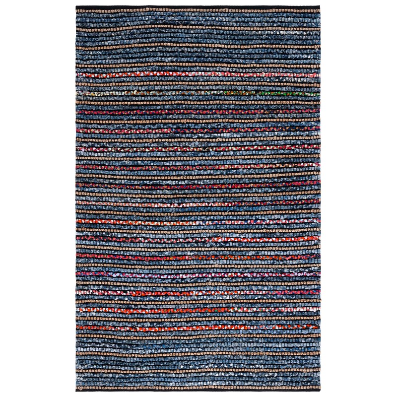 SAFAVIEH Cape Cod Collection Accent Rug - 4' x 6', Natural & Blue, Handmade Boho Jute & Cotton, Ideal for High Traffic Areas in Entryway, Living Room, Bedroom (CAP362A)