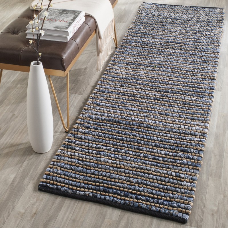 Safavieh Cape Cod Collection CAP365A Handmade Flatweave Braided Cotton & Jute Runner, 2'3" x 10' , Blue