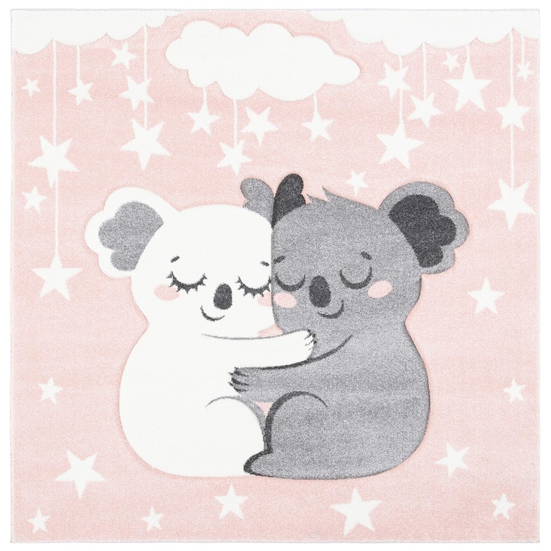 Safavieh Carousel Kids Collection 4' Square Pink/White CRK195U Koala Hug Non-Shedding Nursery Playroom Area Rug