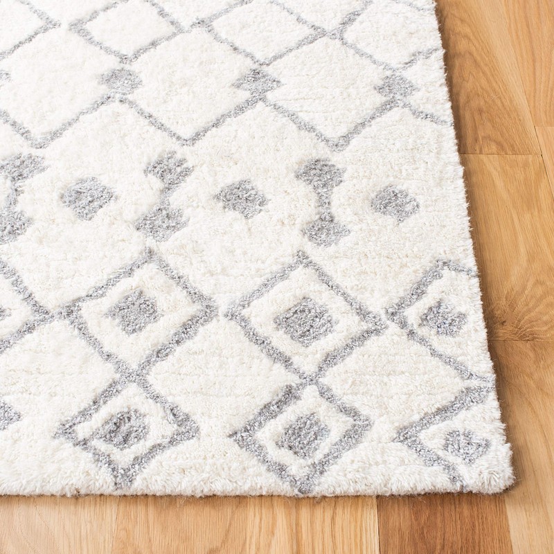 Safavieh Casablanca Shag Collection CSB203G Handmade Moroccan Premium Wool Area Rug, 5' x 8', Ivory / Silver