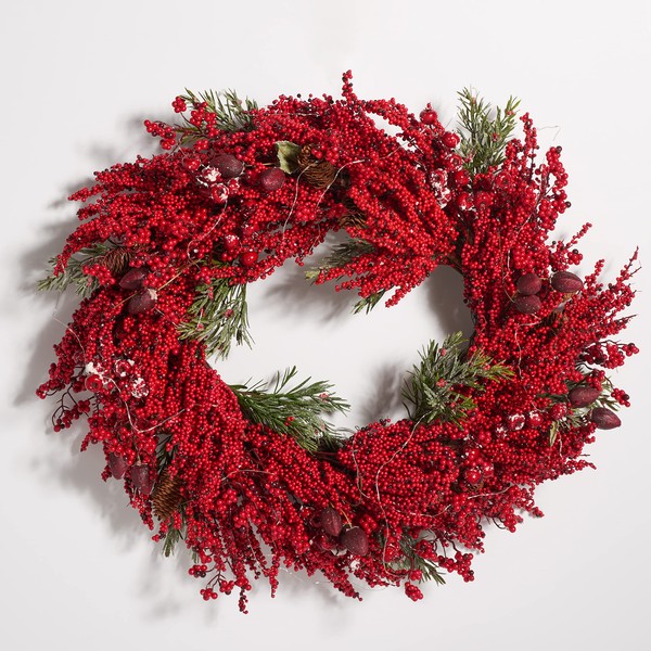 SAFAVIEH Home Collection 30-inch Decorative Artificial Red Berry & Pine Wreath LED Light (Fully Assembled)