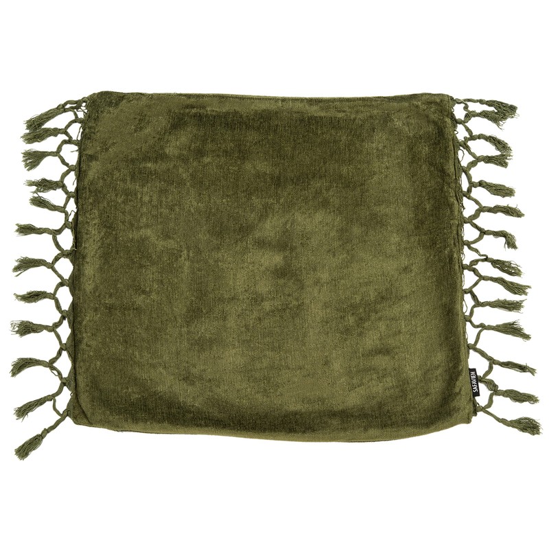- [CHIC DESIGNER DETAILS]: Features a dark green cotton chenille fabric and playful woven fringe tassel details