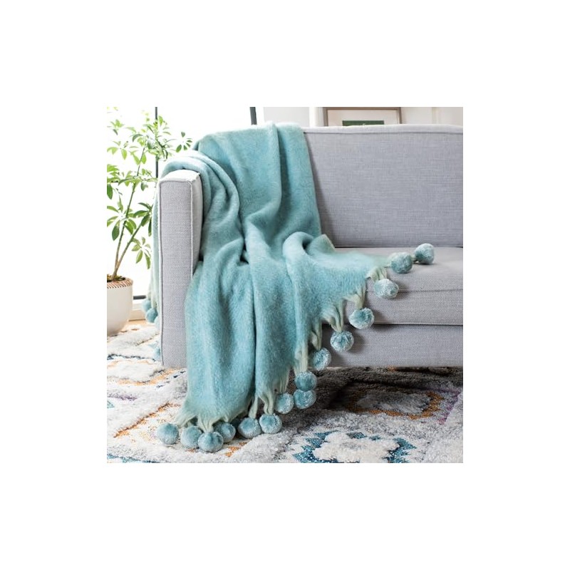 Safavieh Home Collection Shae Aqua 50 x 70-inch Pom Pom Decorative Throw Blanket