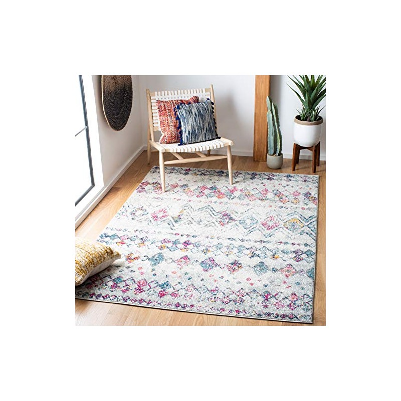 Safavieh Madison Collection MAD798J Moroccan Boho Distressed Area Rug, 8' x 10', Grey / Purple