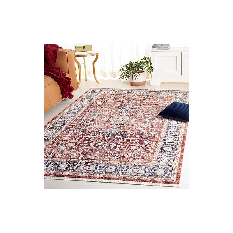 SAFAVIEH Rosewood Collection Area Rug - 4' x 6', Blue & Red, Traditional Persian Design, Non-Shedding & Easy Care, Ideal for High Traffic Areas in Living Room, Bedroom, Dining (ROW116J-4)