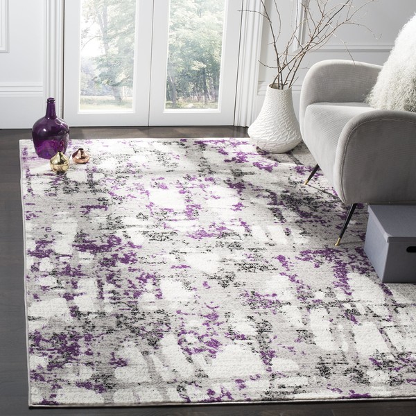 Safavieh Skyler Collection SKY193R Modern Abstract Area Rug, 4' x 4' Square, Grey / Purple