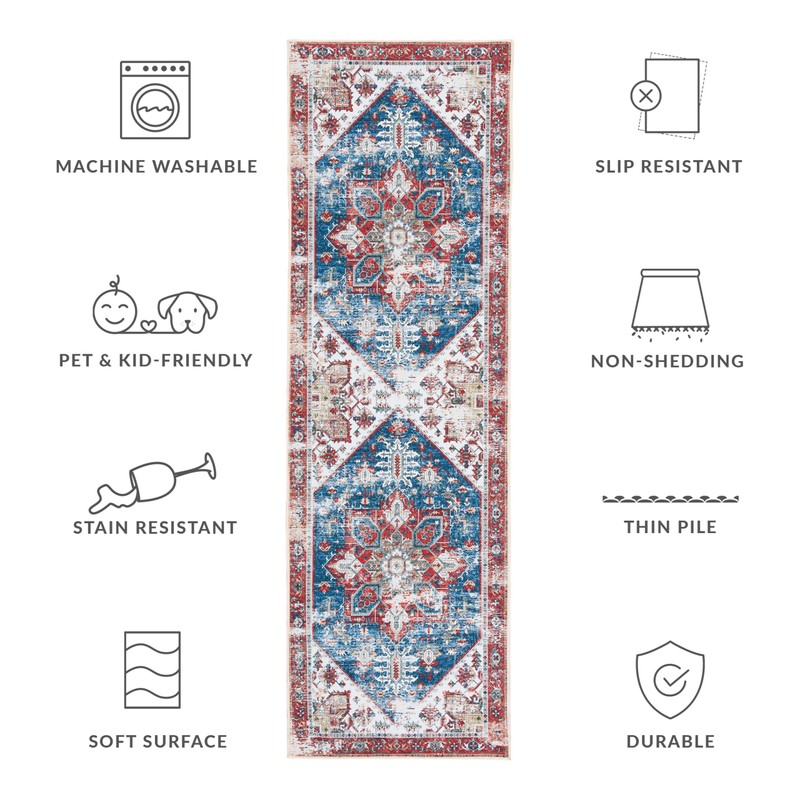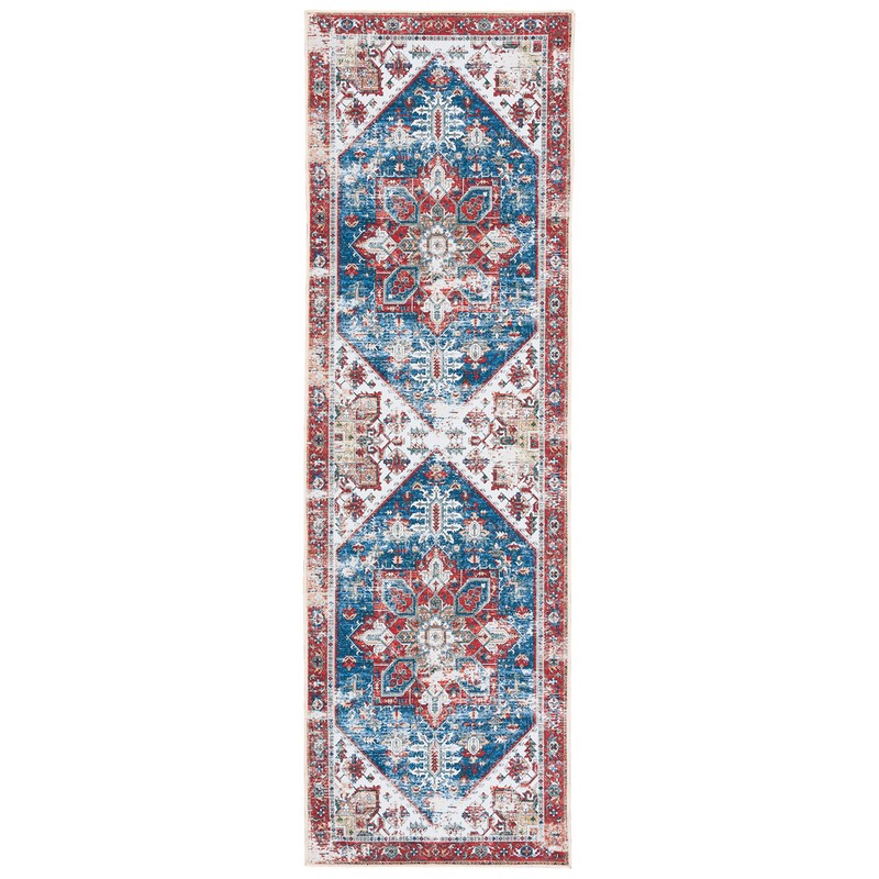 SAFAVIEH Tucson Collection Runner Rug - 2'6" x 16', Blue & Red, Persian Medallion Design, Non-Shedding Machine Washable & Slip Resistant Ideal for High Traffic Areas in Living Room, Bedroom (TSN102M)