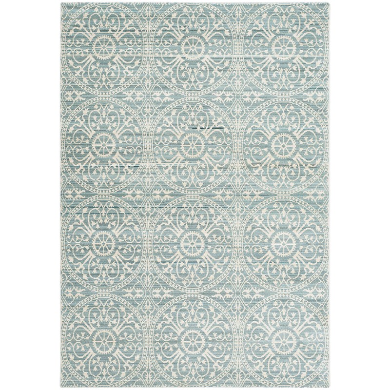 Bring tranquil artistry into your home with this antiqued alpine colored rug from Safavieh’s Valencia Collection. Inspired by classic Persian motifs, this collection uses over-dye techniques to create a chic vintage appeal. A lustrous striated worn patina comes from the rug’s polyester fibers that exude a slight sheen from every angle. Soft and luxurious to the touch, this rug’s colors vary faintly depending upon its angle of repose. With accents of teal and cream, this graceful medallion rug is a stunning option for hardwood floors. Expertly power-loomed in Turkey, its construction ensures longevity and resilience so as to be a favorite for family and friends to enjoy for years to come. With a low pile height, this rug also easily allows for seamless placement under furniture and in entryways.