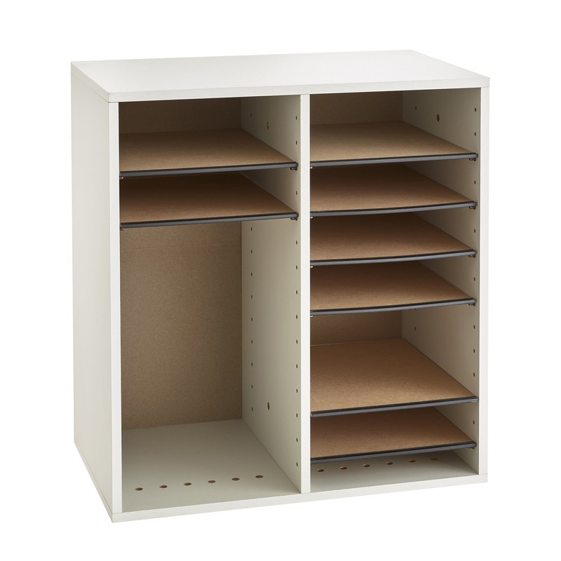 - EFFICIENT ORGANIZATION. Hardboard shelves form up to 16 letter-size compartments. Shelves remove easily to create larger storage areas for maximum convenience.