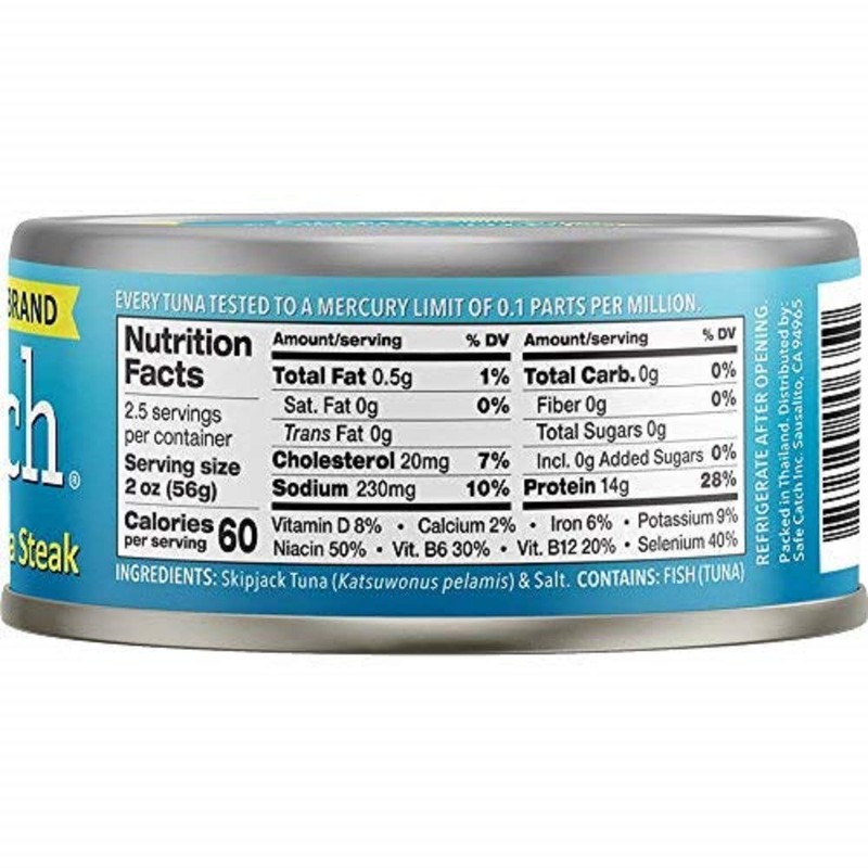 √ MERCURY TESTED We hand pick premium wild tuna, then test each and every one to a mercury limit that is ten times (10x) lower than the FDA action limit. Safe Catch Elite is the only brand of tuna that meets Consumer Reports’ “Low Mercury” criteria set for pregnant women and children. Safe Catch Elite is the official tuna of the American Pregnancy Association. √ ARTISAN COOK PROCESS Most canned tuna loses flavor and the majority of Omega 3s due to precooking and machine processing. We hand pack premium raw wild tuna steaks to retain all the vital Omega 3 oils and nutrients and then slow cook them to perfection. √ NOTHING ADDED, NOTHING DRAINED We don’t add oil, water, fillers, preservatives, or GMO-Soy broth to our tuna. It’s just pure wild tuna. Just empty the can into a bowl and mix together so the tuna reabsorbs any natural fish oils. Please do not drain. √ SUSTAINABLY CAUGHT Our Elite tuna is wild and sustainably caught without using FADs or long lines. We are a proud partner of the Monterey Bay Aquarium Seafood Watch program. *Note – The actual label received may differ from product photo above. We are in the process of transitioning our labels. The product remains the same deliciously pure tuna as always. Ingredients: Skipjack tuna, salt