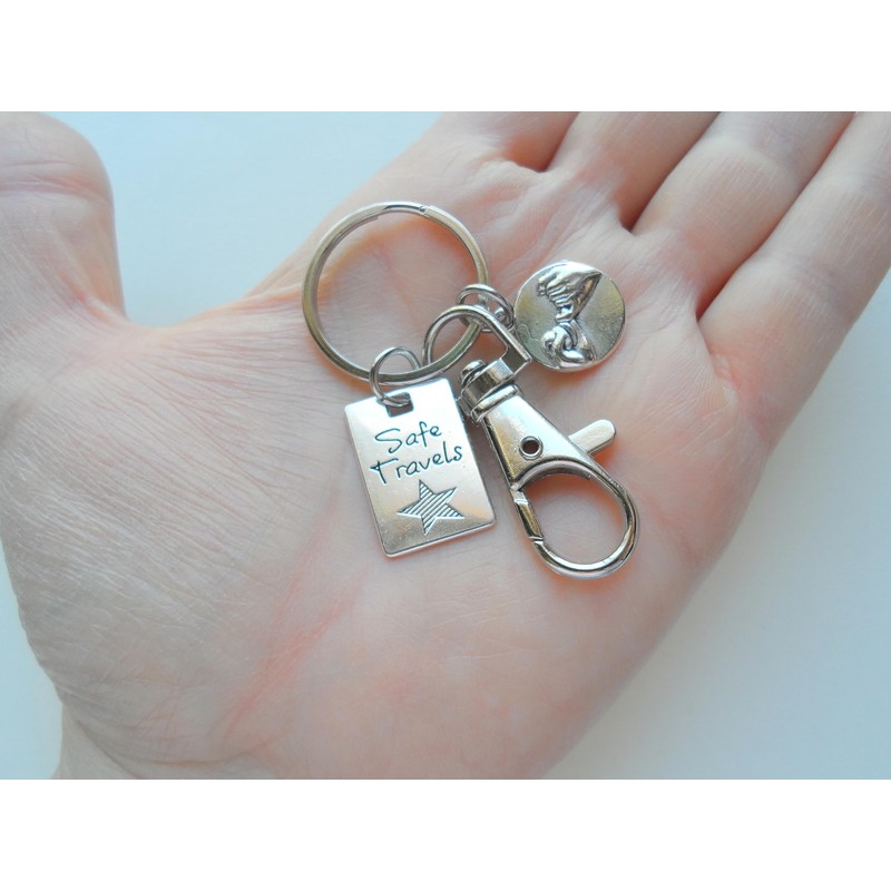 Safe Travels Charm Keychain with Pinky Promise Charm & Swivel Clasp