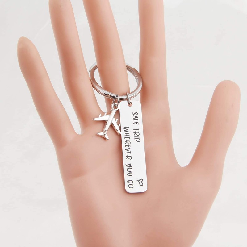 Safe Trip Wherever You Go Keychain Safe Travels Keychain Flight Attendants Gift Pilot Jewelry Aviation Gift (keychain)