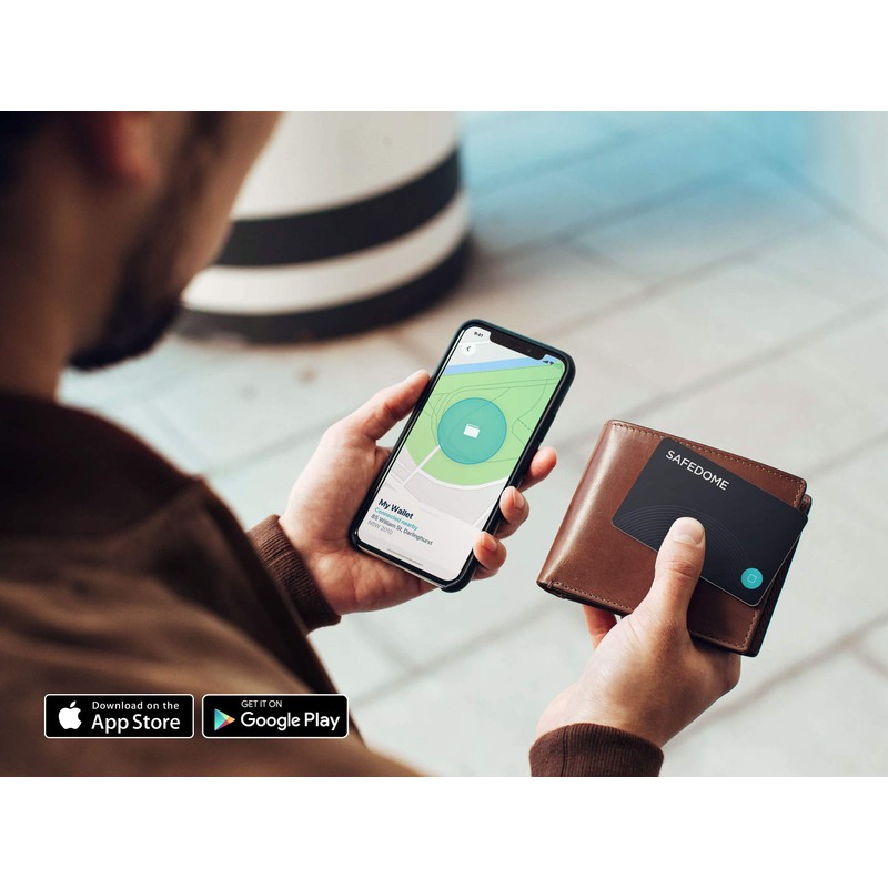Find your wallet, keys, wallet and cell phone with the Safedome Key Finder & Recarge Card Tracker Combo Pack: Includes 1 premium leather Bluetooth tracker key finder fob and 1 rechargeable tracker card. Attach the Safedome Leather Key Tracking Fob to your car, home, apartment keys and slim 1.66mm charging tracking card to your wallet, passport holder or anything else you can't lose. Free Safedome Companion app allows you to view the last location of lost items on a map. Press the button on the app to call tracker card or key finder. Your phone is nearby, but hiding somewhere? Press the button on the card or key finder to ring a lost phone. Both smart tracking items in this combo pack are Bluetooth 5.0 for improved reliability and performance.