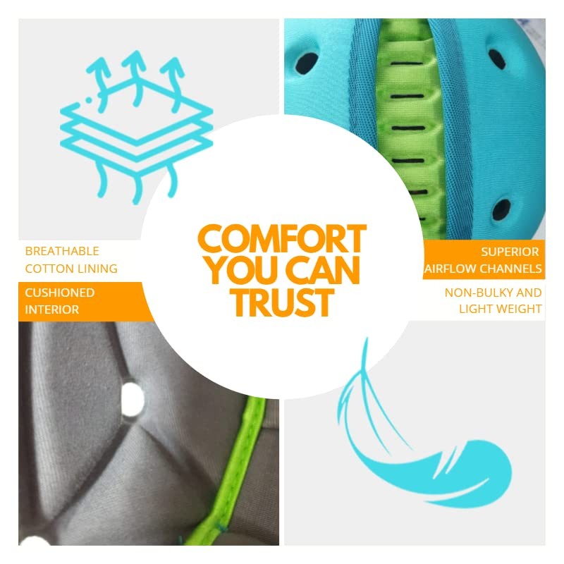 - ☑️ [Strategic Padding Placement] Our baby helmet is patented and designed to add an extra layer of protection for your baby’s fontanelles and the back of their head. Cushioned interior helps reduce injury due to falls or bumps when crawling or learning to walk.