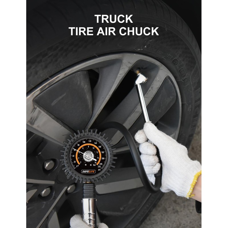 SAFELIFE Tire Pressure Gauge, Heavy Duty Tire Inflator Gauge 230PSI Air Chuck...