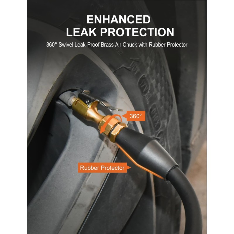 • 𝐔𝐏𝐆𝐑𝐀𝐃𝐄𝐃 π‚πŽππ’π“π‘π”π‚π“πˆπŽπ: Larger ergonomic handle and added air chuck protector for extra comfort. Quality stainless steel inflation trigger for lasting performance.