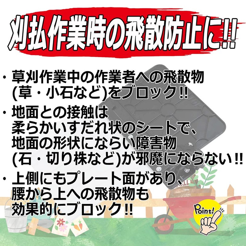 • Feature 1: Block the scatter of grass and pebbles while mowing work to prevent scattered objects (grass, pebbles, etc.)