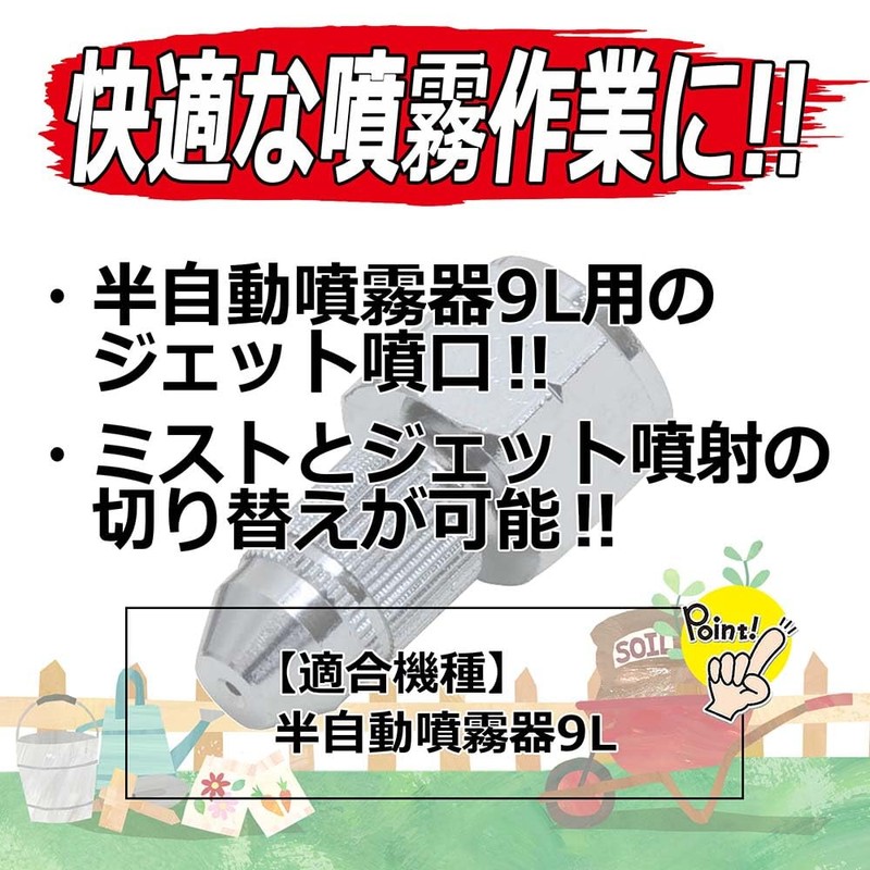 - Feature 1: Jet spout for a semi-automatic sprayer