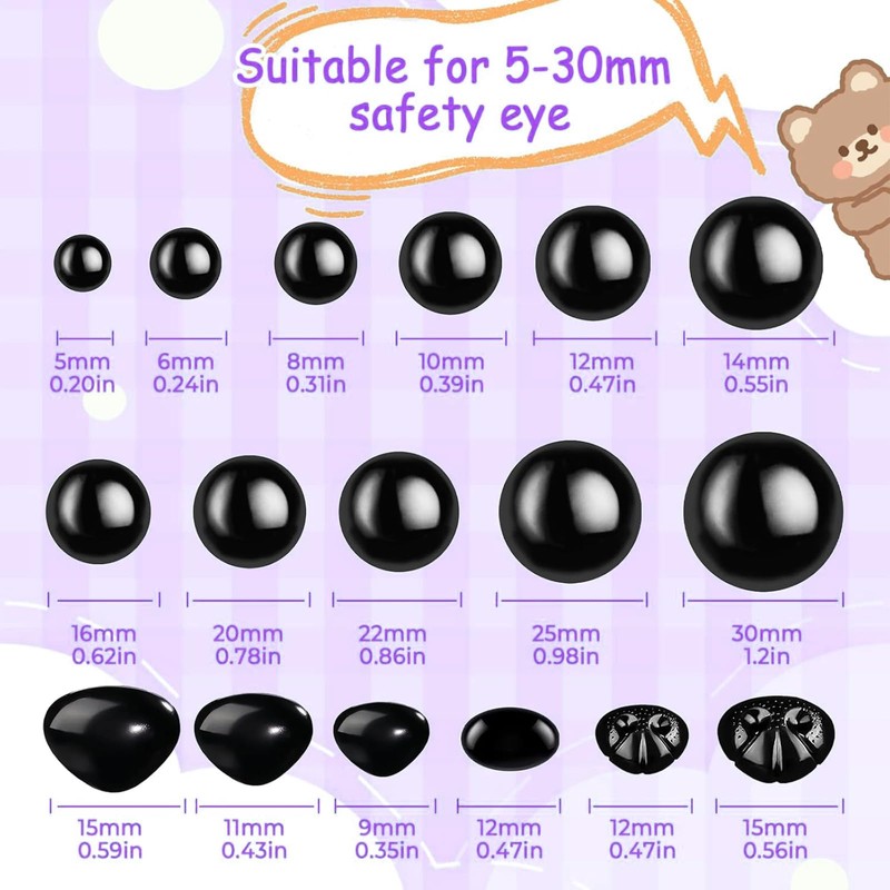 - SAFETY EYES TOOL: This auxiliary tool for attaching helps securely set safety eyes and washers on crocheted toys effortlessly. It is suitable for safety eyes ranging from 5-30mm. A buckle is added to the lever to control the opening and closing, which is convenient for storage and saves space.